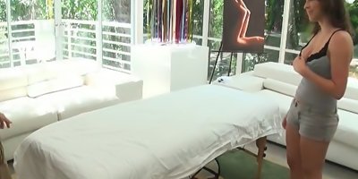 Lily Love is here to make you tent your pants. In this free Massage Creep scene, the stunning brunette is seduced by her masseur into fucking right there on the massage table. He rubs her supple tits and feeds her his hard cock before sliding the shaft balls deep into her pussy from behind. Enjoy!