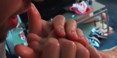 The hot and busty blonde Alanah Rae is getting an amazing treat by this guy. He's going to massage her feet, her back and her ass using oils and an exquisite technique, before using his hard shaft to give a happy ending for her shaved pussy.