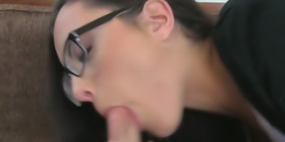 An insatiable girl with glasses is doing what she loves to do the most in the world: have sex. Her name is Roxanne Rae and she's giving this guy a great time with a blowjob and cock ride that evolves into a doggy and missionary style banging for her craving snatch.